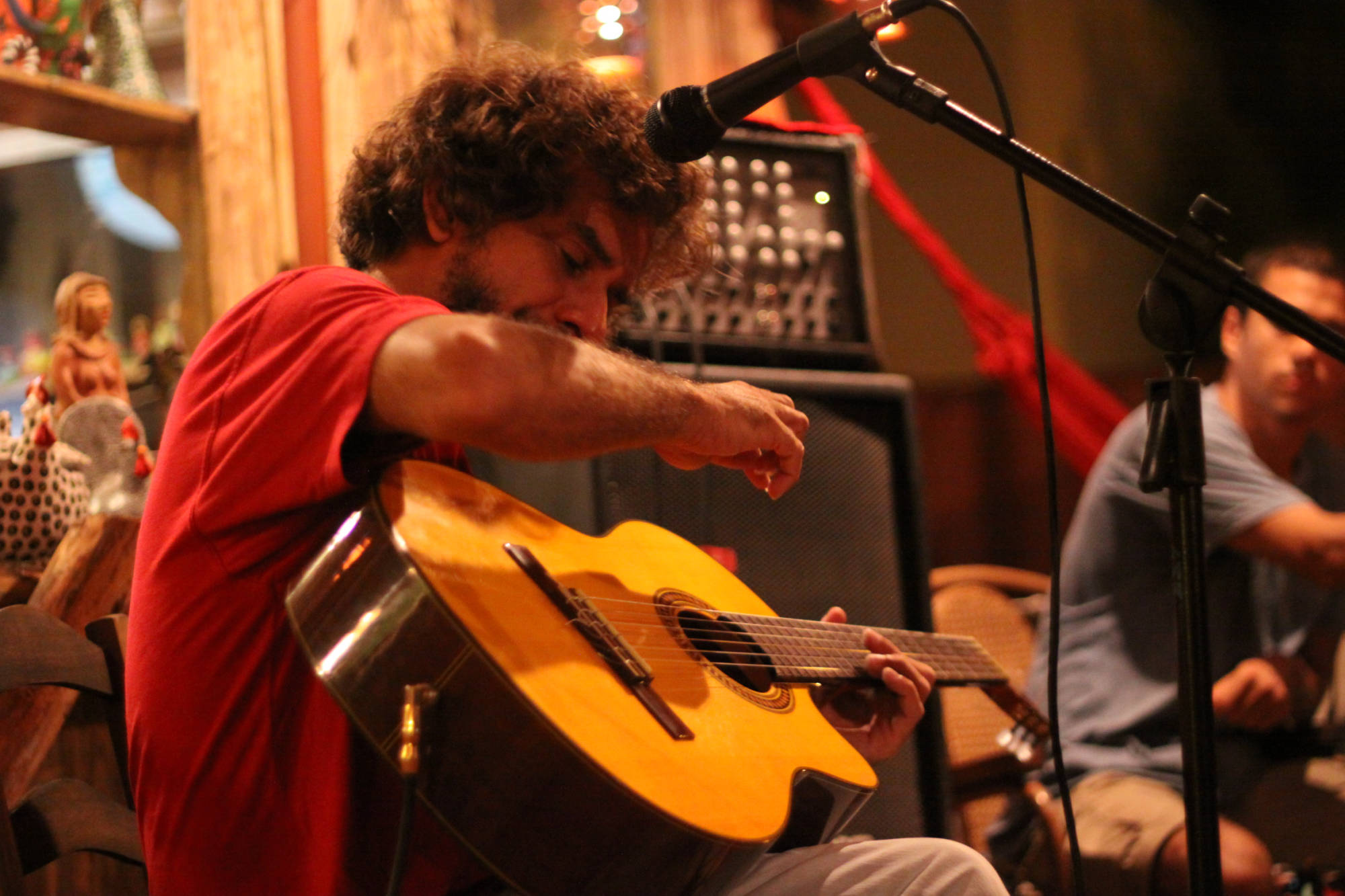 He quickly became enchanted with music and the guitar during his high school years, delighting his classmates by playing the hits of the day and participating alongside more experienced musicians in so-called serenades, where he also played the cavaquinho. His creative and composing talent also began to manifest itself successfully in his participation in student music festivals. During this time, he had his first contact with the man who would become one of his greatest influences: bassist Arthur Maia (In Memoriam).